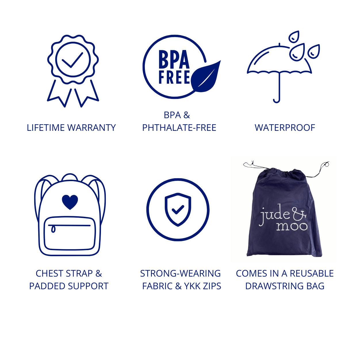Water-proof durable material : Keeps snacks, drawings, and treasures safe from spills and rain.